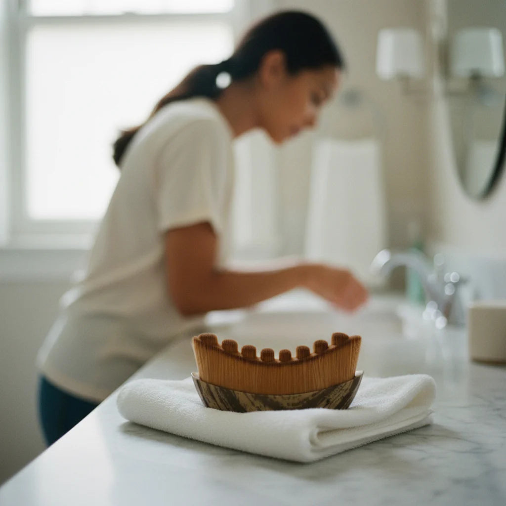 Aucune huile, aucun sérum requis. La brosse s’utilise seule, sur peau sèche ou légèrement humidifiée, pour un soin simple, naturel et sans contrainte.