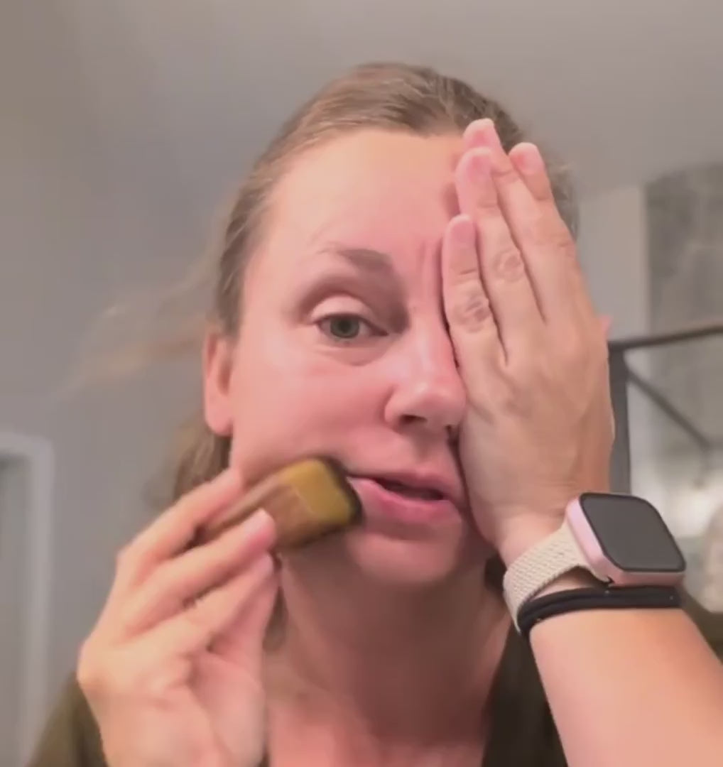 - Passez la brosse à sec en mouvements doux le long de votre visage (front, joues, mâchoire, cou)